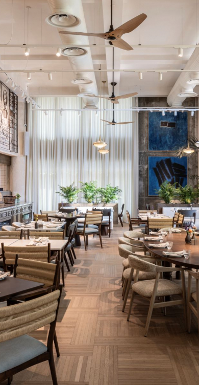The beautiful restaurant overlooks Tel Aviv’s urban landscape, reflecting the city’s changing atmosphere throughout the day; bright and laid-back in the morning and afternoon, intimate and vibrant in the evening.