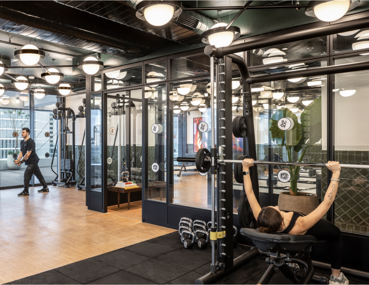 חלל אימונים מקצועי עם ציוד מתקדם לשימוש החברים של ג׳ורג׳ ואורחי המלון.